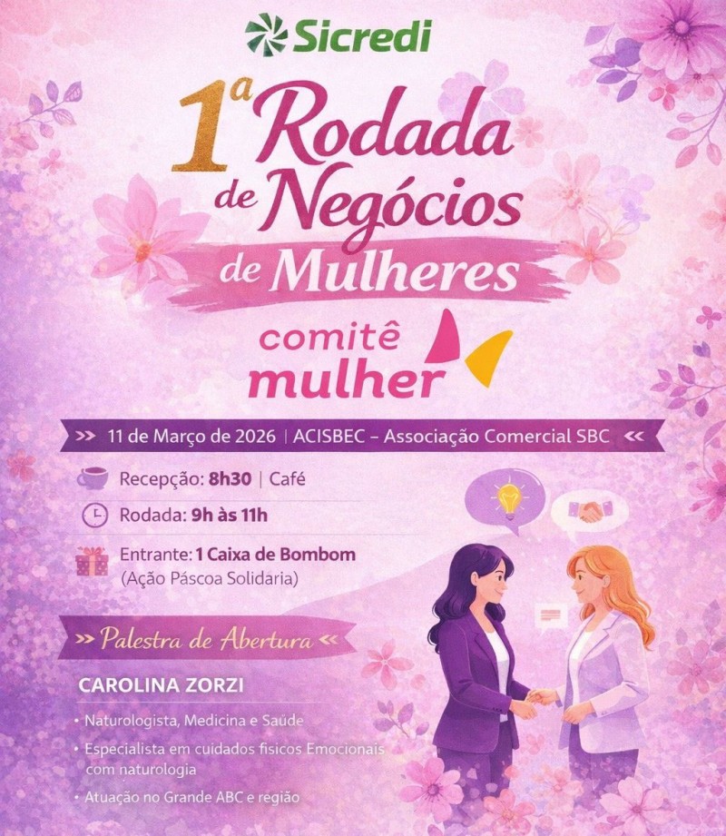 Em comemoração ao - Dia Internacional da Mulher, o Sicredi convida você para a 1ª Rodada de Negócios de Mulheres. Um encontro especialmente pensado para conectar, inspirar e fortalecer empreendedoras. Este é um movimento de protagonismo feminino, criado para gerar oportunidades e impulsionar a economia local. Um espaço estratégico para ampliar sua rede de contatos, estabelecer parcerias e acelerar o crescimento dos seus negócios ao lado de mulheres que compartilham a mesma visão de futuro. Este é o seu momento de se posicionar, se conectar e prosperar.