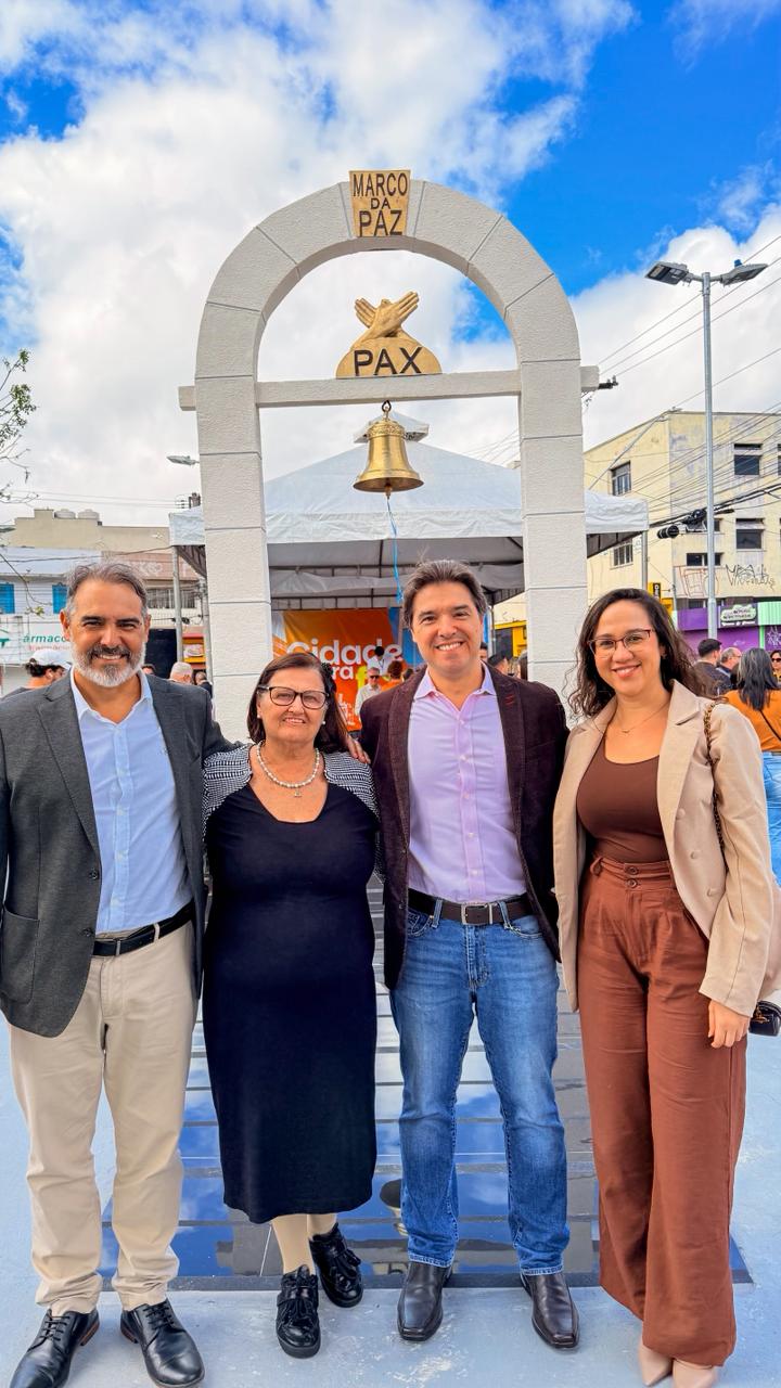 São Bernardo do Campo passou a integrar oficialmente o roteiro mundial do Marco da Paz na manhã deste domingo, 1º de março, às 10h, com a inauguração do monumento na cidade. Instalada na Praça Alberto Eduardo Bellinghausen, no Centro, a obra é composta por um arco, uma pomba e um sino que são os símbolos da cultura de paz, união e fraternidade entre os povos. A conquista faz parte de luta histórica da ACISBEC (Associação Comercial e Industrial de São Bernardo do Campo).